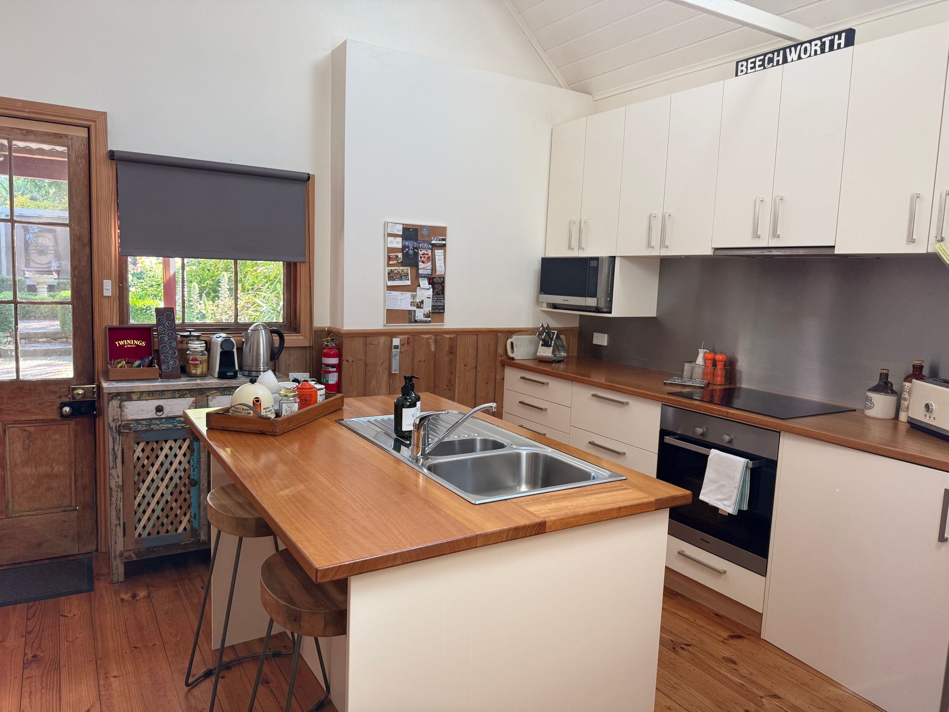 You'll have full access to this private self-contained cottage and ornate English style garden. The fully equipped modern kitchen features electric induction cooktop, dishwasher, stylish timber island bench and convenient front load washing machine. Nespresso machine and coffee and tea supplies are provided for guests.