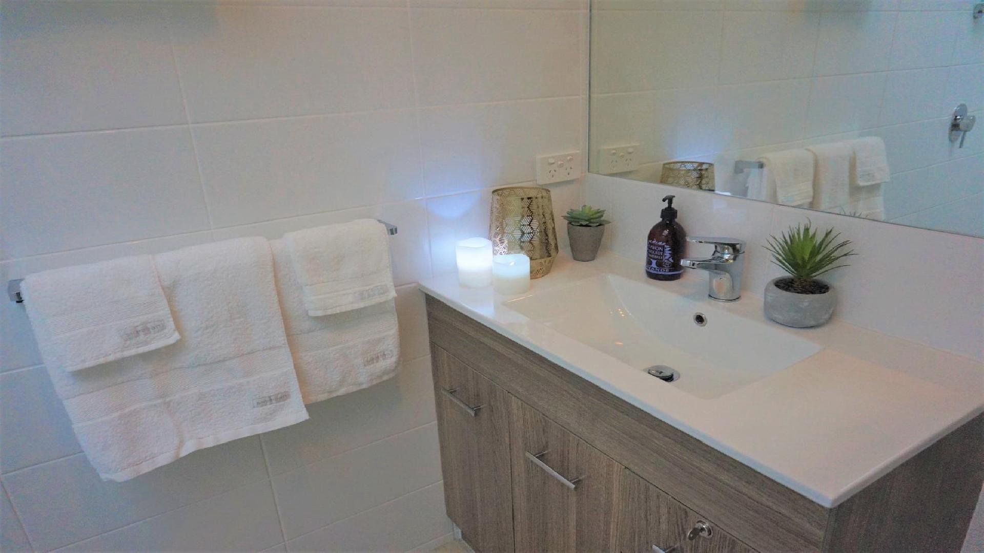 The updated bathroom includes toiletries for your convenience and a hair dryer. All linen is provided.